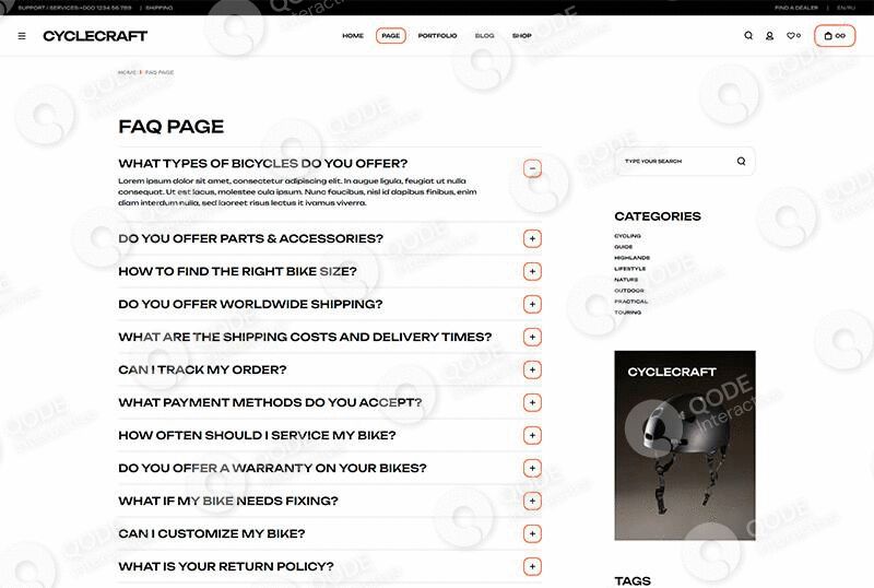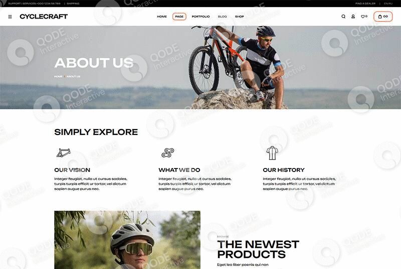 Showcase all your cycling gear and products in a complete, captivating way with this website example.